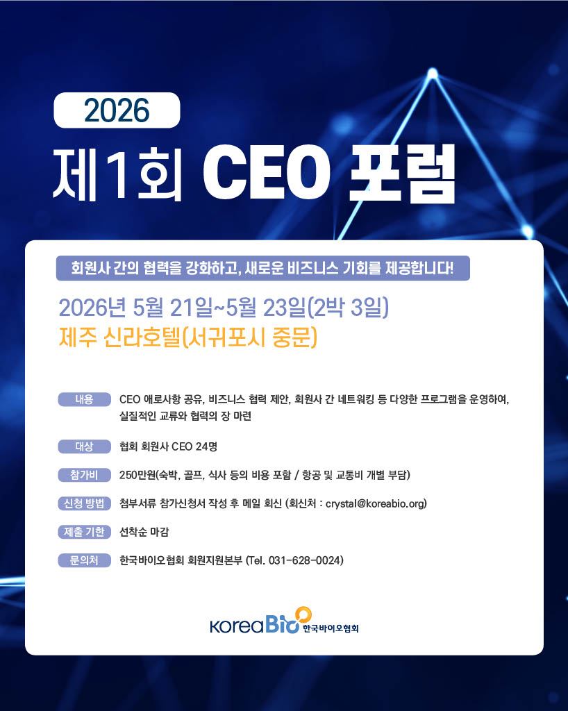 - 한국바이오협회 2026년 제1회 CEO 포럼 참가 안내 공문(PDF)