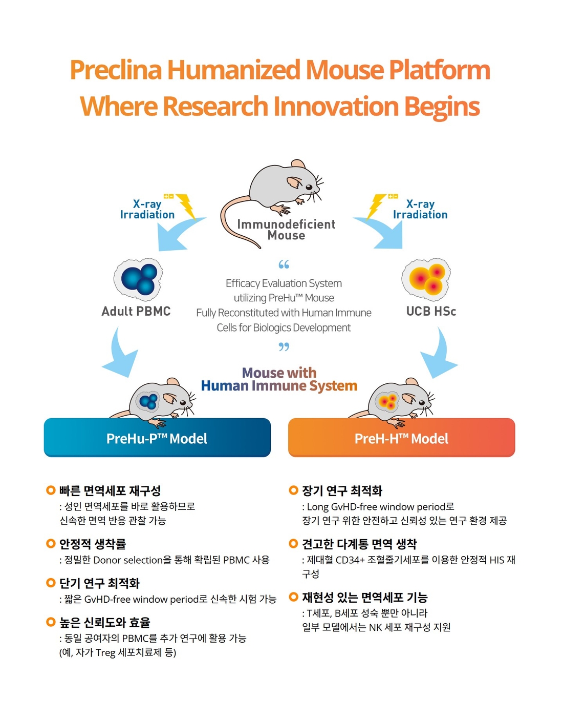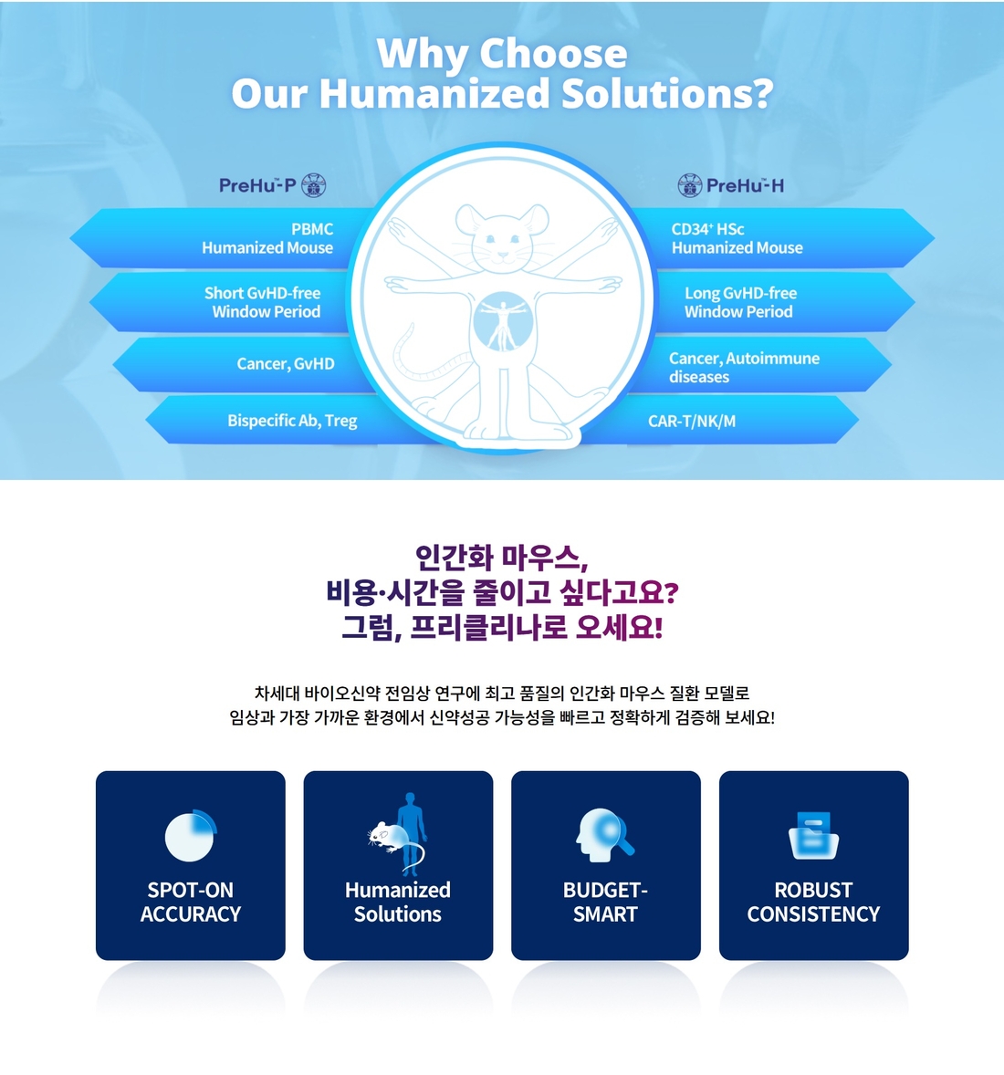 프리클리나, 인간화 마우스, 비용·시간을 줄이고 싶다고요? 그럼, 프리클리나로 오세요!