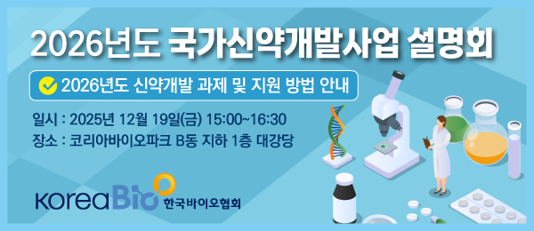 한국바이오협회는 바이오기업을 대상으로 2026년도 국가신약개발사업 설명회를 개최하고자 합니다. 아래 내용을 확인하시고 많은 관심과 참여 부탁드립니다.