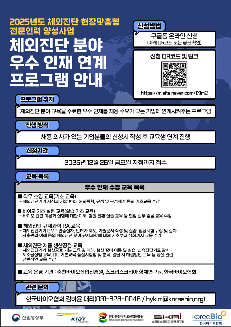 [한국바이오협회] 체외진단 분야 우수 인재 연계 프로그램 안내