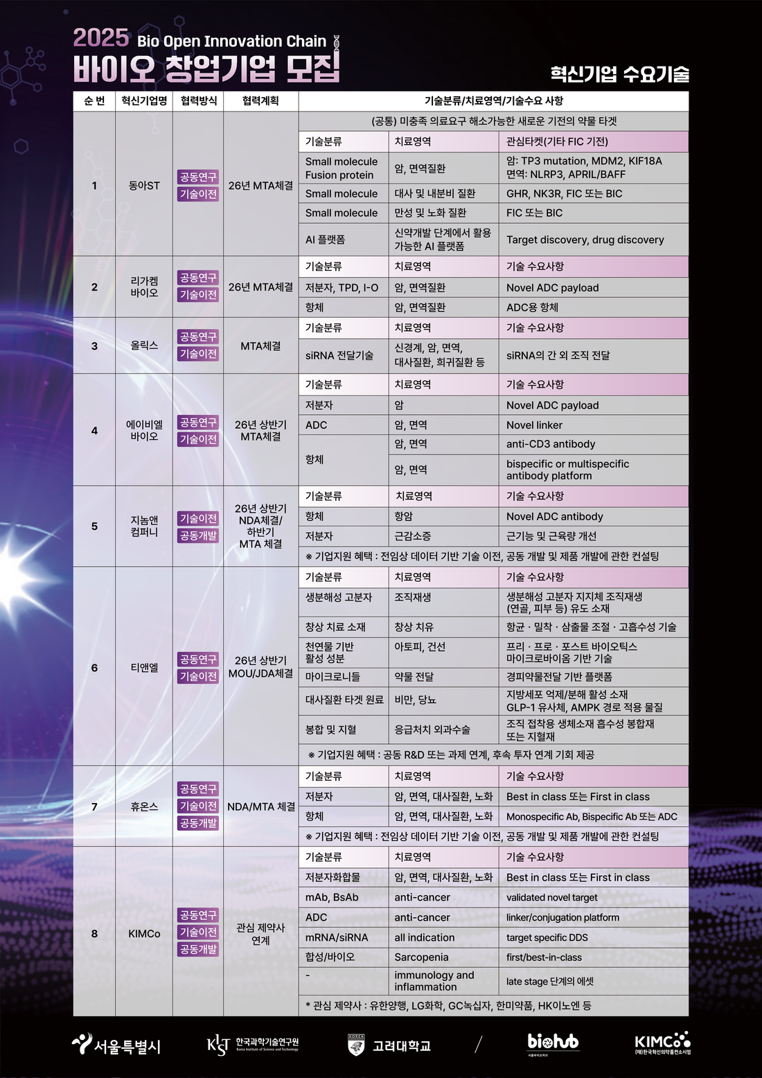 [서울바이오허브] 2025 바이오 오픈이노베이션 체인 프로그램 참여기업 모집