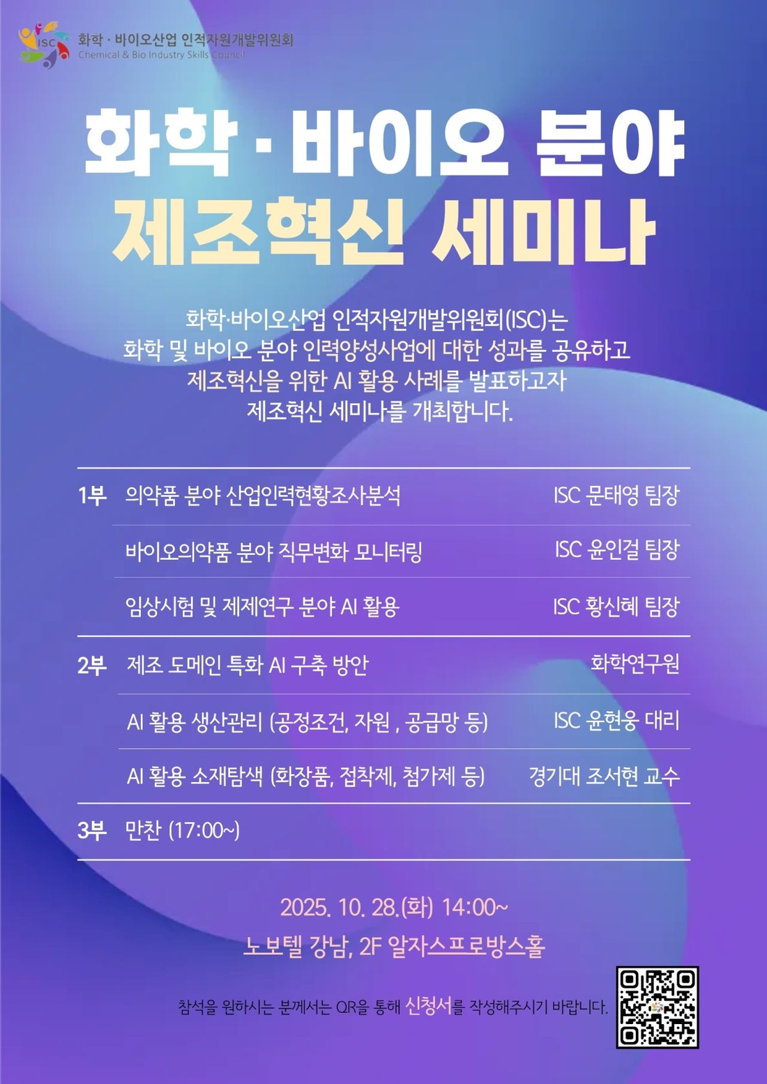 화학바이오산업 인적자원개발위원회(ISC)는 2025년 인력양성사업의 성과를 공유하고