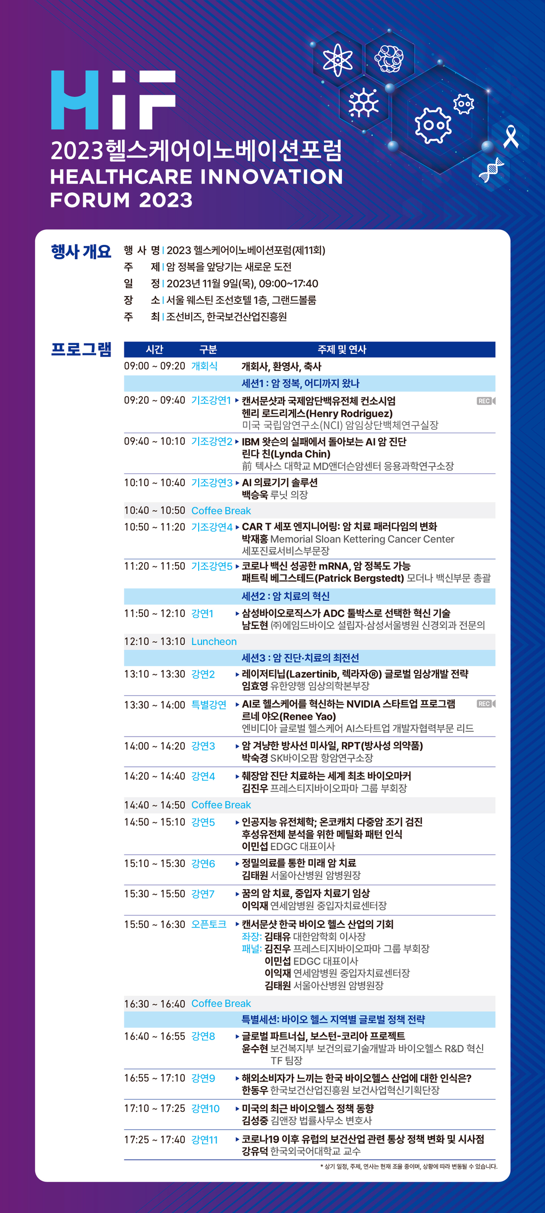 • 행 사 명 : 2023헬스케어이노베이션포럼