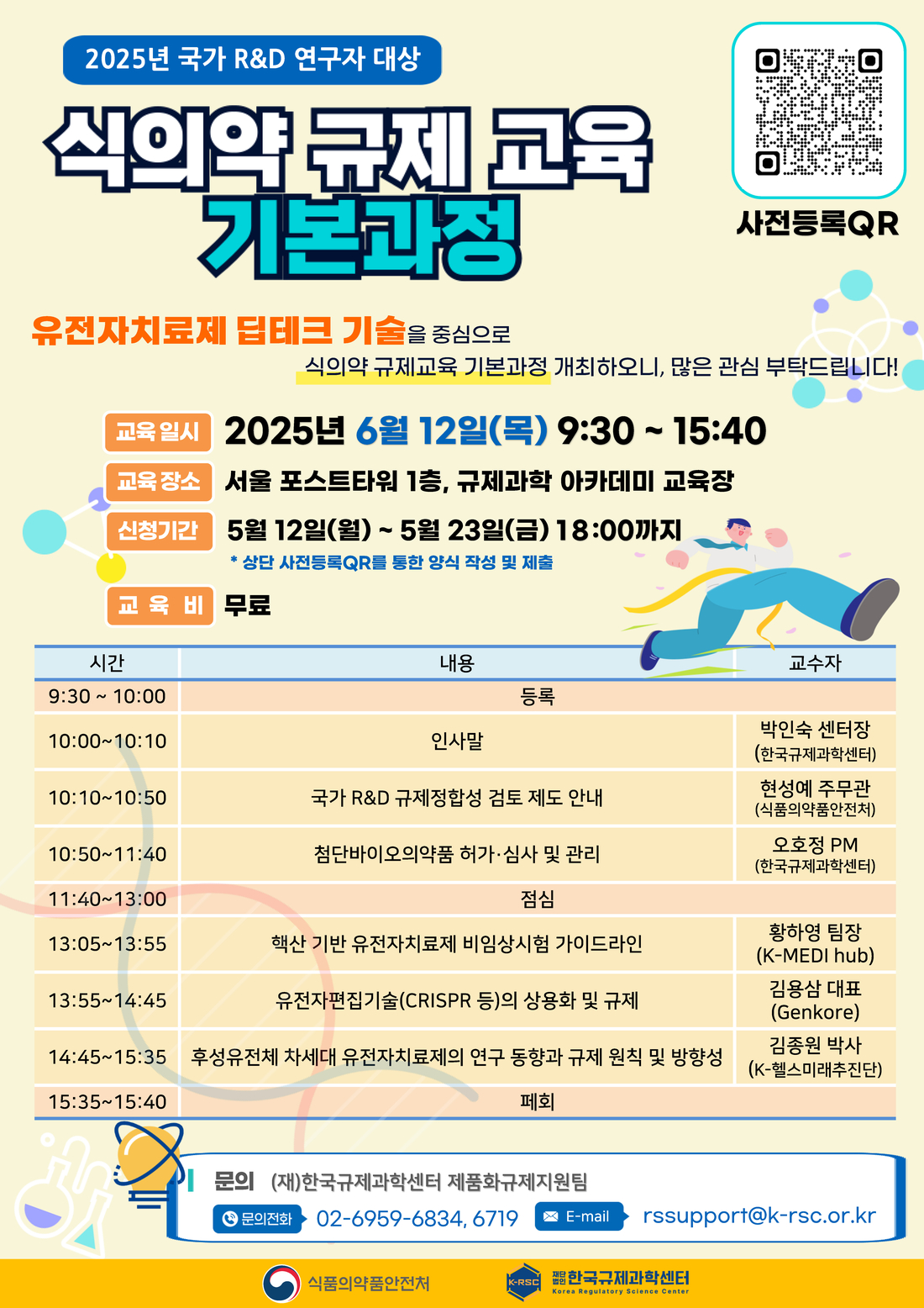 [한국규제과학센터]「2025년 국가 R&D 연구자 대상 식의약 규제 교육 기본과정」 모집 공고