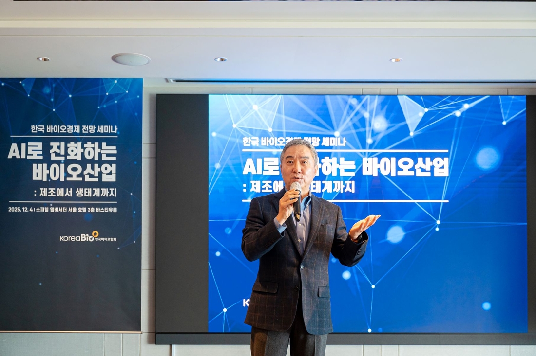 한국바이오협회는 바이오업계 관계자 등 150여 명이 참석한 가운데 ‘한국 바이오경제 전망 세미나’를 4일 소피텔 앰버서더 서울 호텔에서 개최했다고 밝혔다. 이번 세미나는 AI 기술이 바이오산업의 제조 공정부터 연구·개발, 식품, 신소재 등 전 분야에서 빠르게 확산됨에 따라 산업 동향을 공유하고 정책 방향을 제안하기 위해 마련됐다.