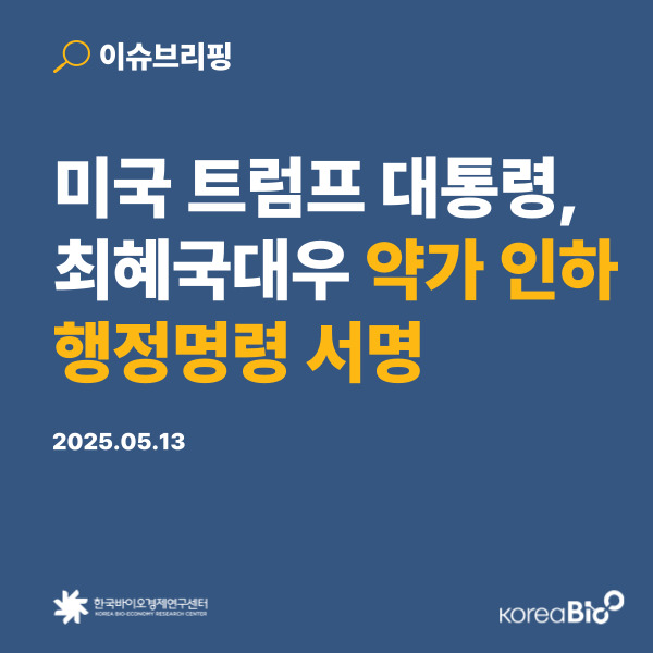 [이슈 브리핑] 미국 트럼프 대통령, 최혜국대우 약가 인하 행정명령 서명