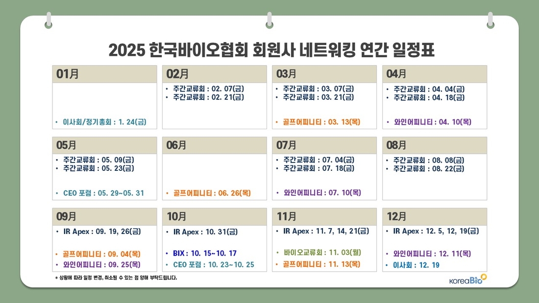 2025년도 한국바이오협회 회원사 네트워킹 일정표