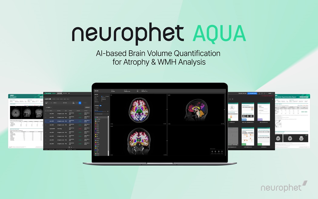 뉴로핏 아쿠아는 뇌 MRI(자기공명영상)를 AI 기술로 분석해 알츠하이머병 등 신경 퇴화 질환에서 관찰되는 뇌 위축과 백질의 변성을 분석하는 의료기기다. 모든 인종, 나이, 성별에 상관없이 5분 만에 뇌 영상 분할 및 분석이 가능하다.
