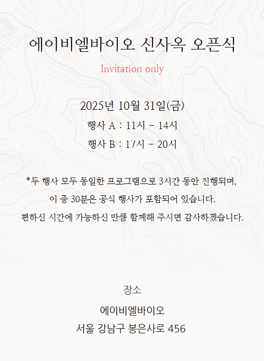 에이비엘바이오, 신사옥 오픈식 참가신청 안내
