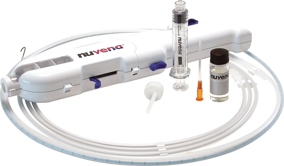 5일 국내 바이오기업 엔게인은 최근 식품의약품안전처로부터 하지정맥류 치료용 의료기기 ‘누베나’(사진)의 시판 허가를 받았다고 밝혔다. 하지정맥류는 다리에서 심장으로 피를 보내는 정맥 속 판막이 약해지며 피가 심장으로 가지 못하고 다리에 고이는 질병을 말한다. 심한 경우 혈관이 굵어지고 혹처럼 튀어 나오게 된다. 나이가 들면서 판막의 힘이 약해져 발생하는 경우가 많지만 오랜 시간 한 자세로 있는 경우에도 발생할 수 있다.