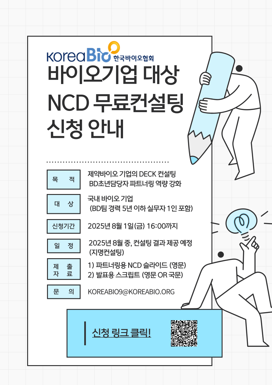 제약·바이오 기업 대상 NCD 무료 컨설팅 신청 안내 (~8/1)