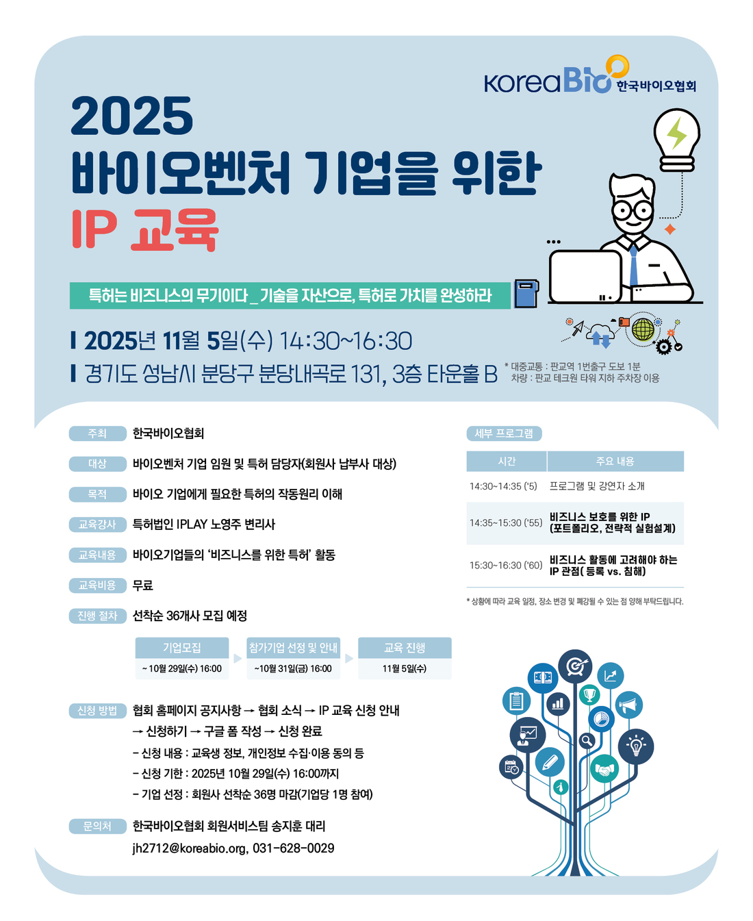 2025 바이오벤처 기업을 위한 IP 교육 신청 안내