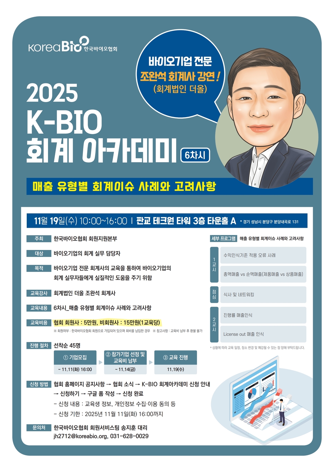 「2025 K-BIO 회계 아카데미」6차시_매출 유형별 회계이슈 사례와 고려사항 및 네트워킹 신청 안내
