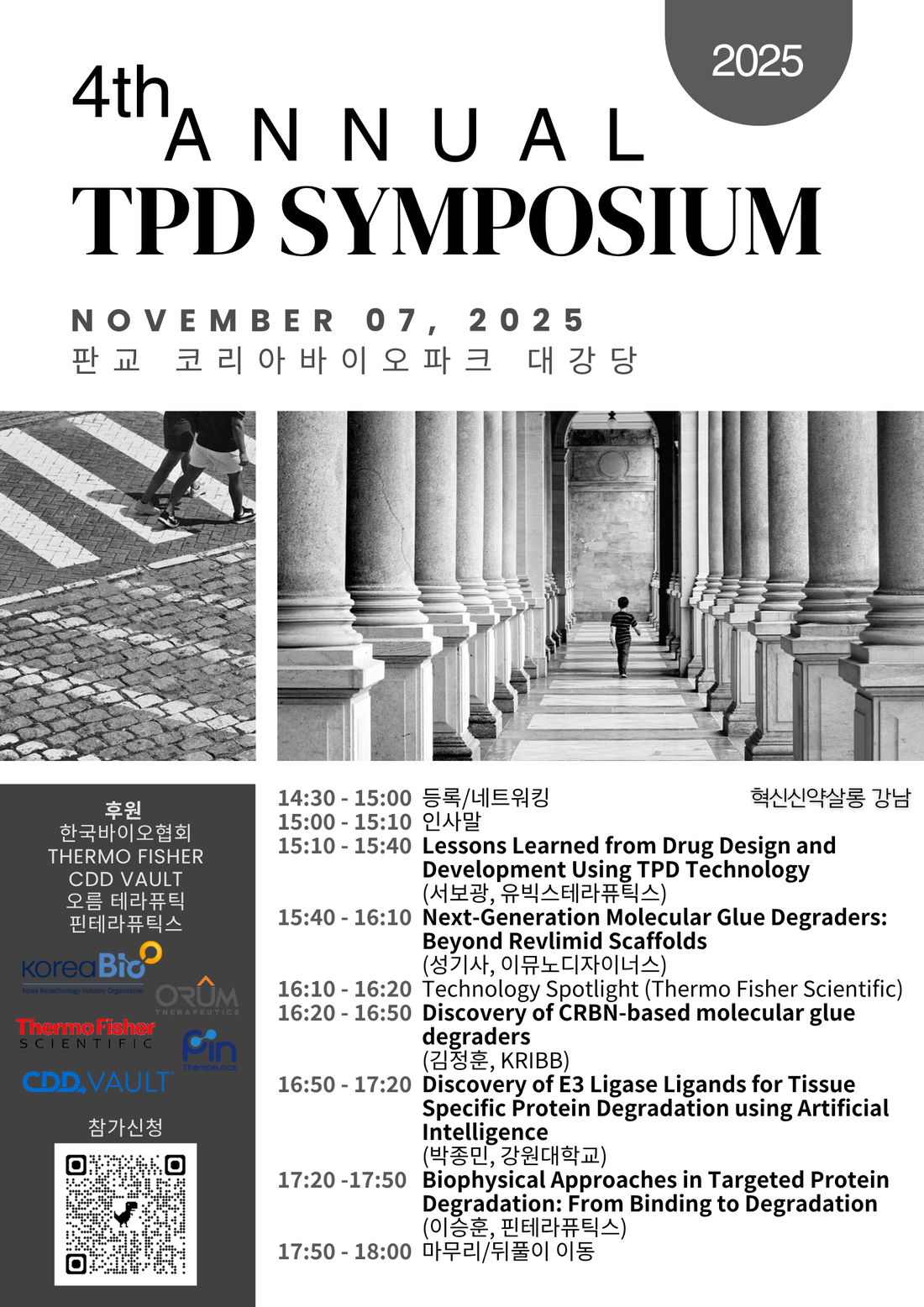 TPD 신약 연구에 관심 있는 제약·바이오 연구자 및 업계 관계자 여러분의 많은 참여를 바랍니다.