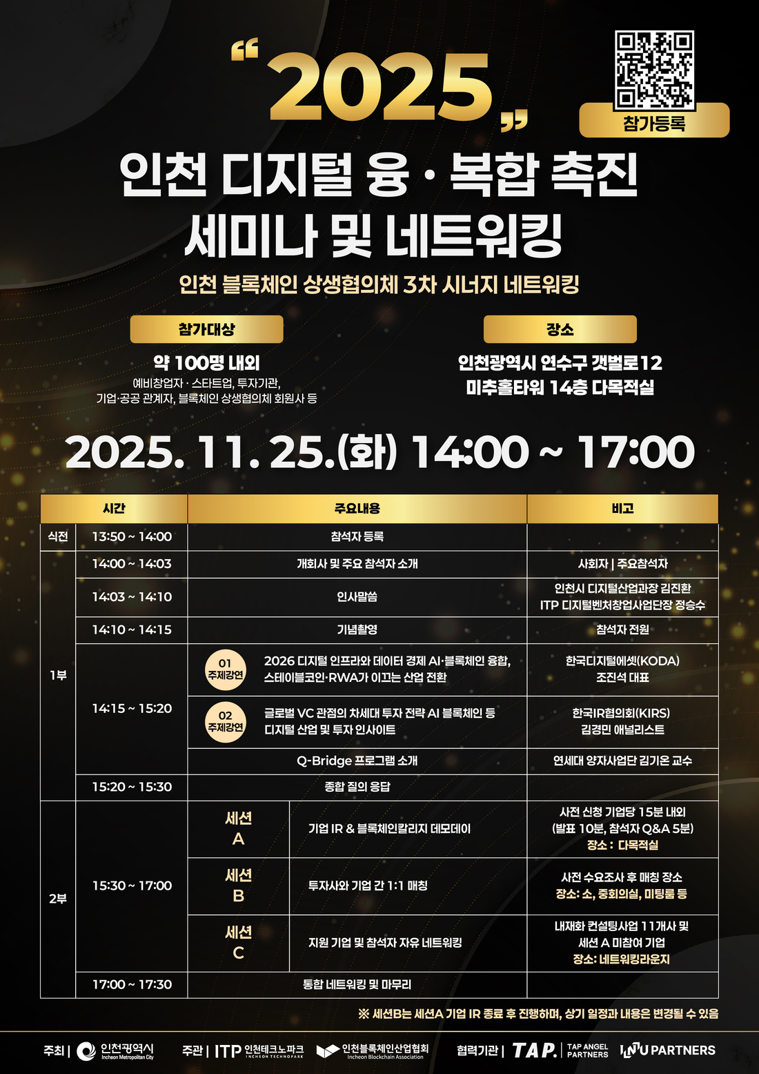 [인천블록체인산업협회] 2025 인천 디지털 융·복합 세미나 개최 안내