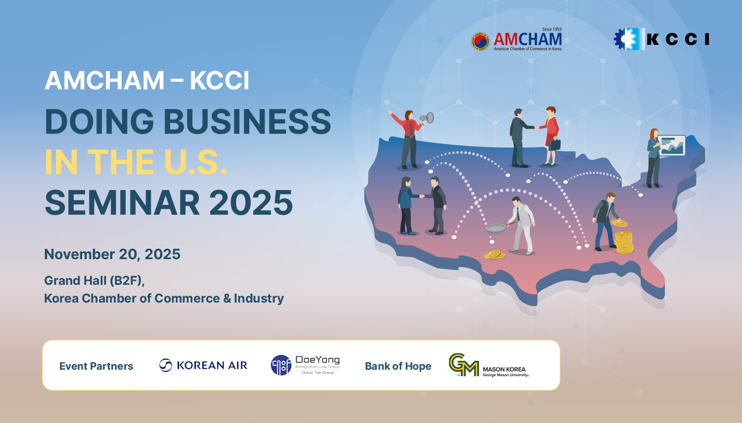 주한미국상공회의소와 대한상공회의소가 공동 주최하는 AMCHAM – KCCI 미국시장진출 세미나 2025 (Doing Business in the U.S. Seminar 2025)가