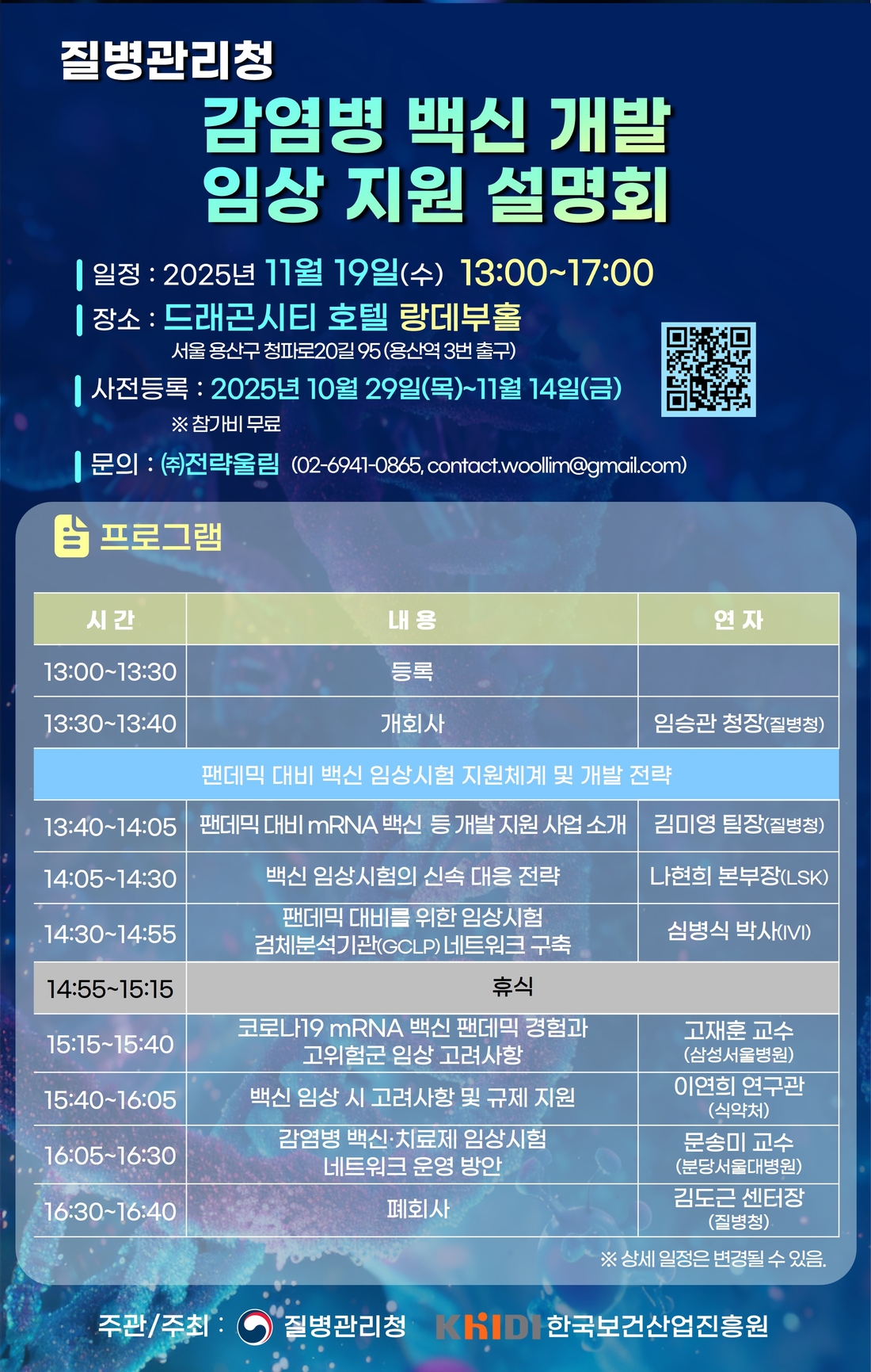 [질병관리청] 백신 임상 지원 설명회 개최 안내