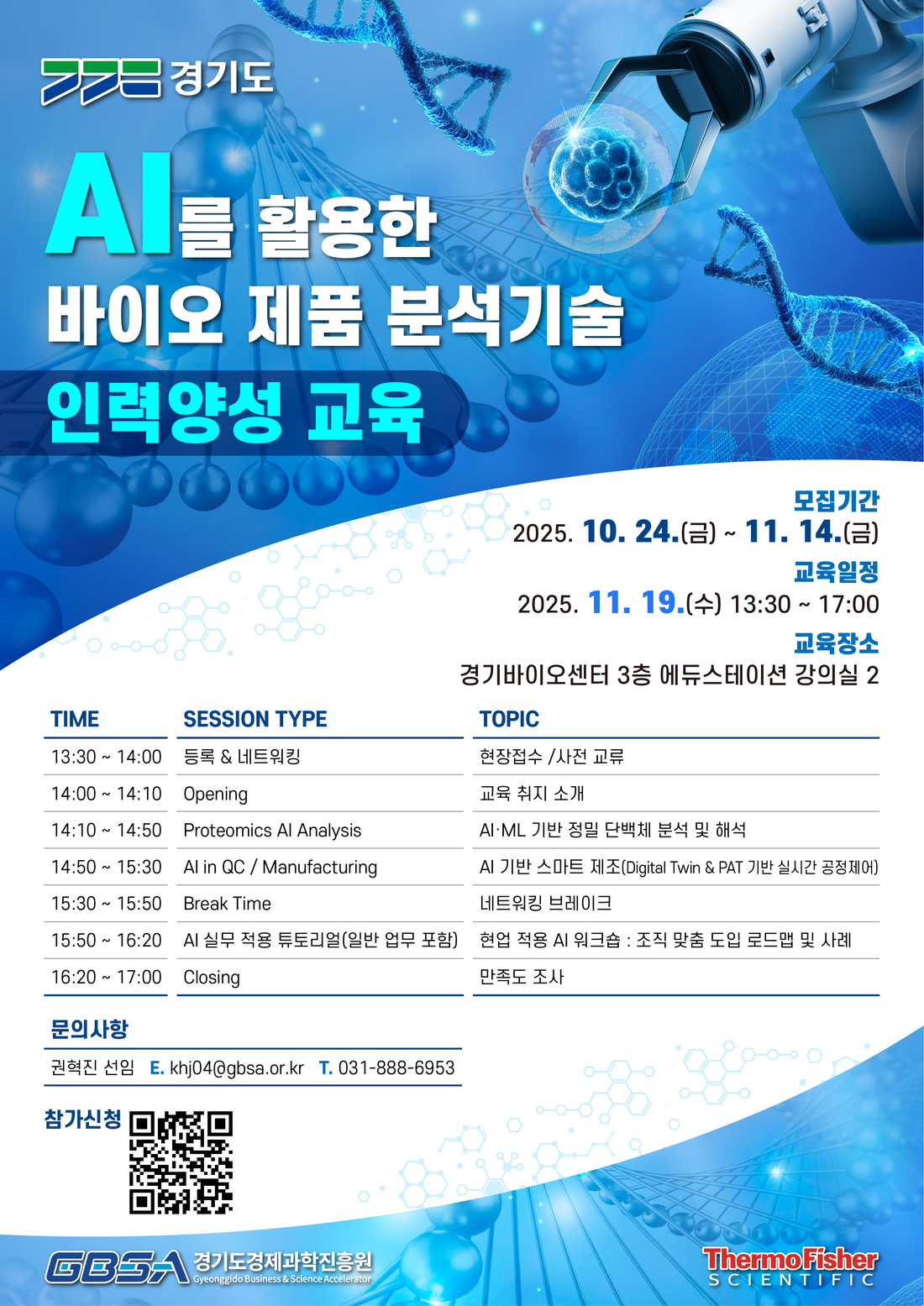 ● 참가신청 : AI를 활용한 바이오 제품 분석기술 인력양성 교육 신청 링크