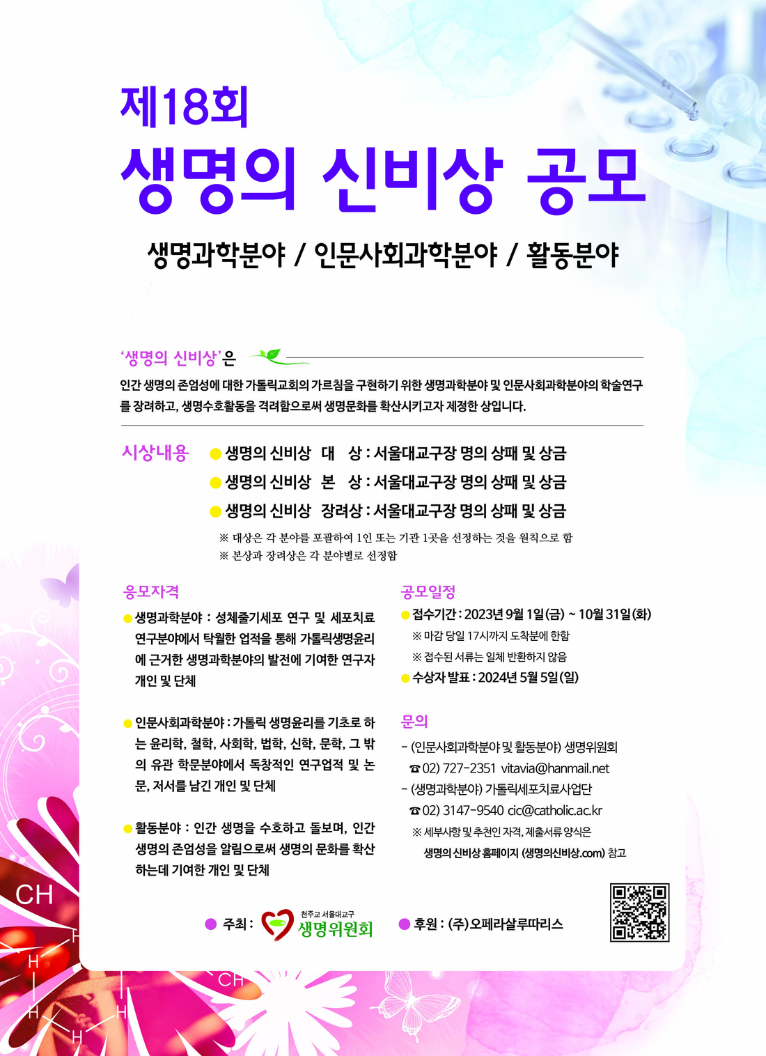 [가톨릭세포치료사업단] '제18회 생명의 신비상' 기업공모 안내