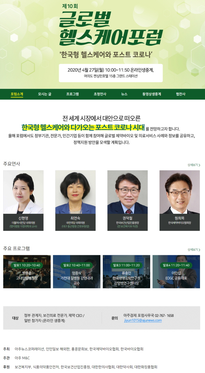 아주경제 제10회 글로벌헬스케어 포럼 개최