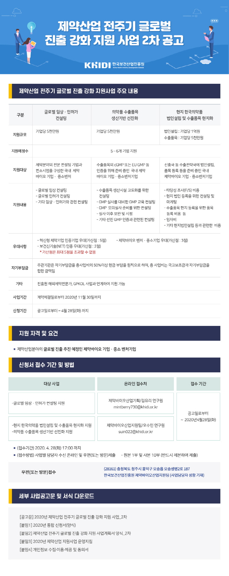 제약산업 전주기 글로벌 진출 강화 지원 사업 공고(~4/28)