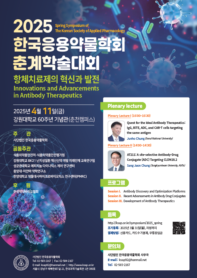 - 행사명: 한국응용약물학회 2025 춘계학술대회