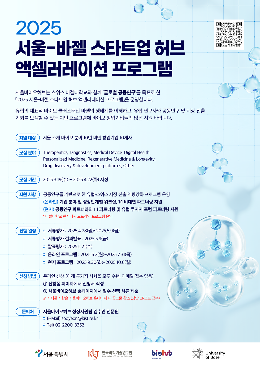 [서울바이오허브] 2025 서울-바젤 스타트업 허브 액셀러레이션 프로그램