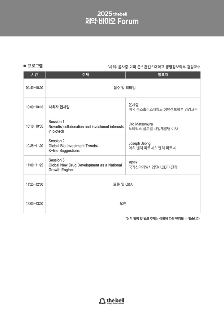 · 행사명 : 2025 thebell 제약·바이오 Forum