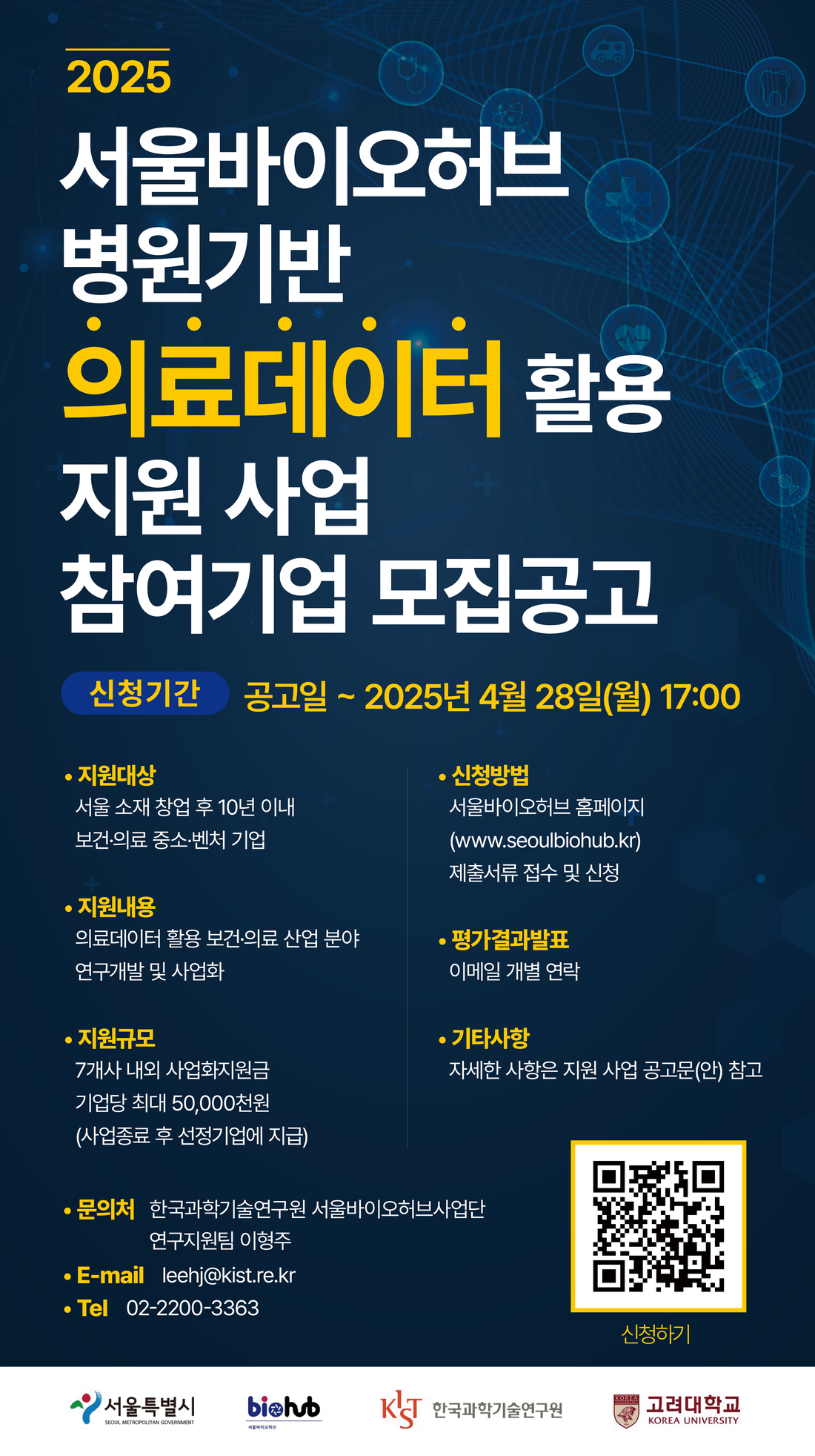 [서울바이오허브] 의료데이터 활용 지원 사업 참여기업 모집