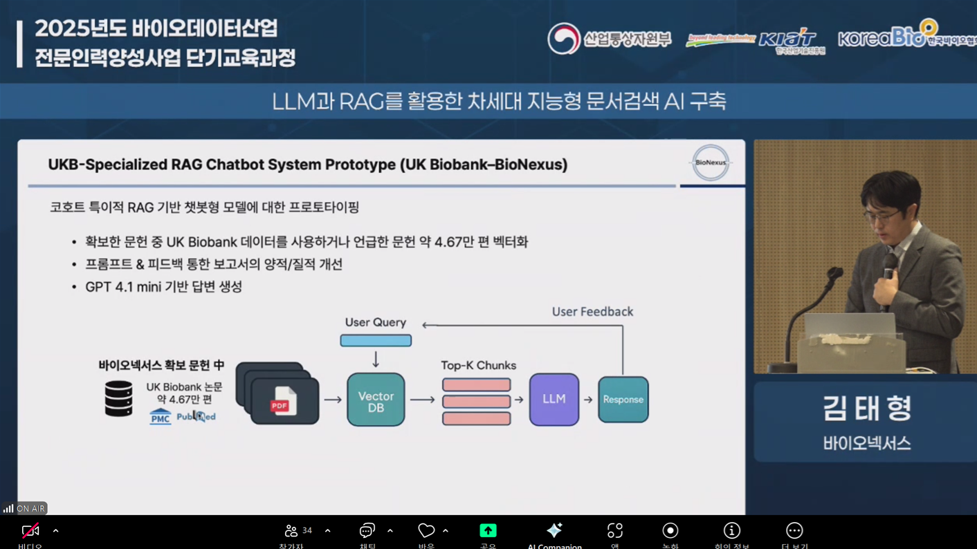 - 내용: ‘LLM과 RAG를 활용한 차세대 지능형 문서검색 AI 구축’을 주제로 한 단기교육과정