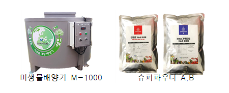 슈퍼파우더(농업용 영양제)-2021년도 유기농공시 예정 / 슈퍼바이오(농업용 영양제)-유기농공시 완료 / 엠씨바이오 케어(농업용 영양제) / V-500(농업용 영양제) / 크린1000(축산용 악취저감제) / 킹-파우더(축산용 보조사료) / 킹-아미노(수산용 보조사료) / 침투미, MC퍼지미, 닥터바실, 닥터브이
